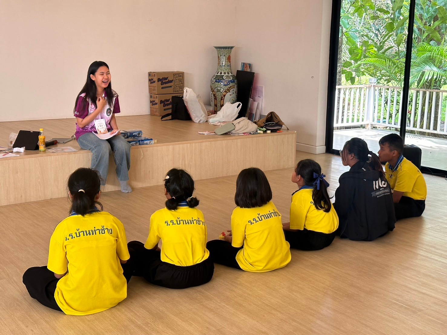 iconProject3 จัดฝึกอบรมนักเรียนโรงเรียนบ้านท่าช้าง โดยคัดเลือกนักเรียนจาก ระดับชั้น ป.4- ม.2 ที่สนใจเข้าร่วม โครงการ ทำหน้าที่ต้อนรับ และนำชมศูนย์เรียนรู้ฯ ในนามมัคคุเทศก์น้อย อบรมโดยวิทยากรมืออาชีพ เพื่อปลูกฝังให้เยาวชนรู้ และเข้าใจเรื่องราวในท้องถิ่นของตนเอง สร้างจิตสำนึกรักษ์ท้องถิ่น มีภาวะ ความเป็นผู้นำ กล้าคิดกล้าแสดงออก สามารถสื่อสารเรื่องราวต่างๆ แก่ผู้มาเยี่ยมชมได้ มีการอบรม มัคคุเทศก์น้อย รุ่น 3 จำนวน 36 คน